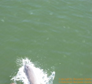 Nach dem Museum hatte ich Hunger gehabt, keine Ahnung was ich machen sollte, essen gehen, war mir aber etwas zu teuer. (Nein ich bin nicht geizig ich kann es mir nicht jedes Wochenende mir leisten essen zu gehen). Na dann macht man halt eine Delfinrundfahrt mit, mit essen. Naja von den Delfinen war halt auch nichts zu sehen, aber es war trotzdem schoen, viele Segler waren unterwegs, einige Motorbootfahrer waren unterwegs. Und man hatte eine schoene Aussicht auf die Berge gehabt und auf der anderen Seite hatte man die Sicht auf die Industrie u.a. auf die Marienwerft gehabt. Und zum Schluss war doch noch ein Delfin zu sehen. Ich glaube es war eine Attrappe oder doch echt?!?