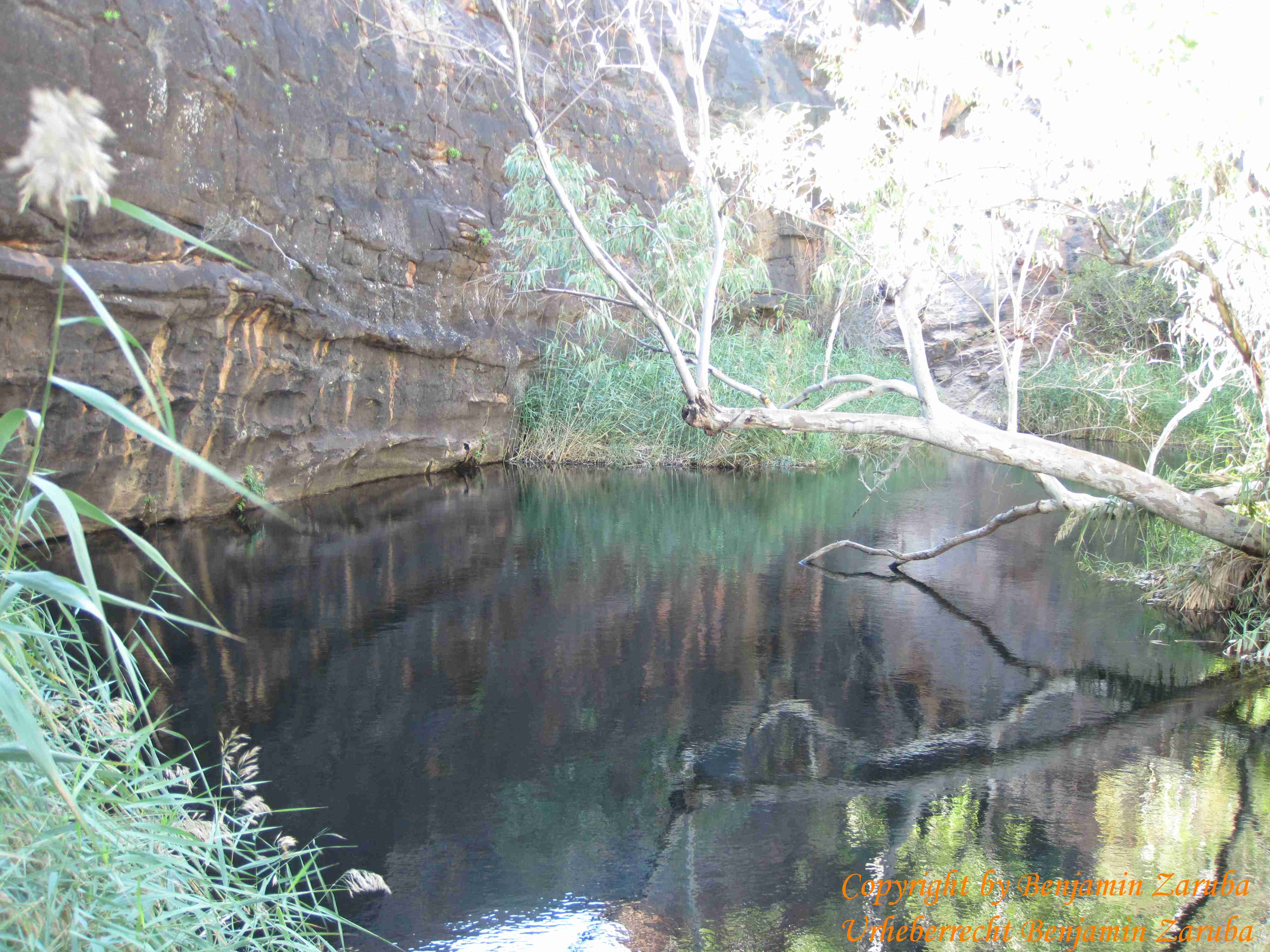 Man hat einiges gesehen und gehoerht und gespuehrt! Es war wunderschoen in dem Canyon. Danach ging es weiter zum Kathleen Springs. Waehrend der Fahrt ist mir eingefallen wo wahr nun Lost City ich hab die nicht gesehen, die haette ich auch mit meinen FlipFlops laufen koennen, aber leider nein ich hab die verpasst und umkehren wollte ich nun auch wieder nicht mehr! Also ging es weiter zu den Springs, Es wahr ein 2km Walk mit vielen Infos, wie die weissen hier sich niedergelassen haben und Viehzucht getrieben haben usw. Nun auch dieser Bereich wahr fuer die Aborigines sehr Heilig! Der wird auch als Rainbow Serpent genannt, ich hoffe ich hab das jetzt auch richtig verstanden! Und die Geschichten ueber diesen Rainbow werden an die Kinder weitererzaehlt wenn die Zeit passt! Nun, mehr kann ich dazu auch nicht erzaehlen, da ich die Storeis auch nicht kenne und nirgends ausgeschildert sind!