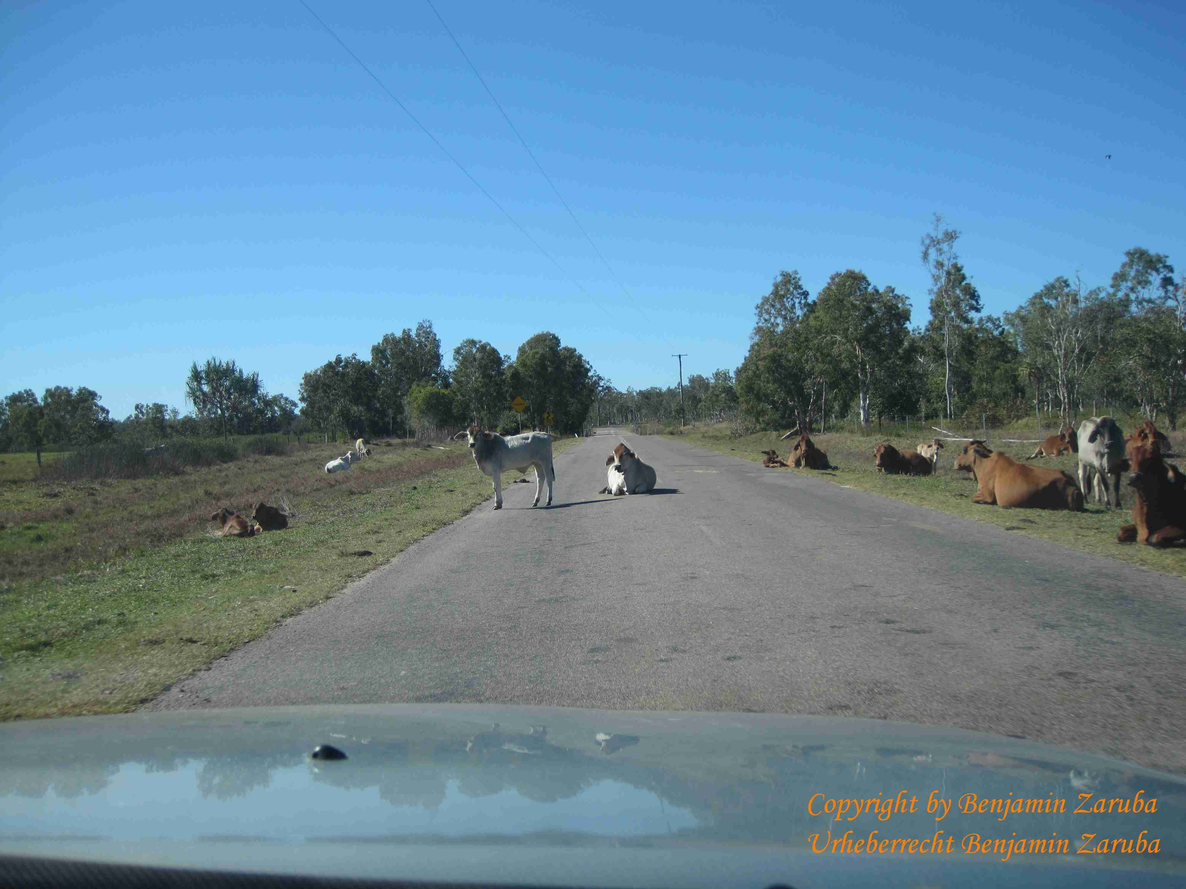 Am naechsten Tag haben wir eine kleine Wanderung zum Pool vom Campingplatz aus gemacht. Aber es waere was zum Schwimmen wenn das Wasser warm gewesen waere! Danach ging es kurvenreichen Berg abwaerts! Unten haben uns wieder Kuehe vom fahren aufgehalten, die lagen einfach auf der Strasse und sind nicht aufgestanden und sind liegen geblieben! Man musste zickzack um diese Tiere fahren. In Ingham bin ich im Wetland laufen gewesen. Habe dort nur ein Kaenguru gesehen und ein paar Voegel. Desweiteren wurde ich von ein paar Muecken gestochen!